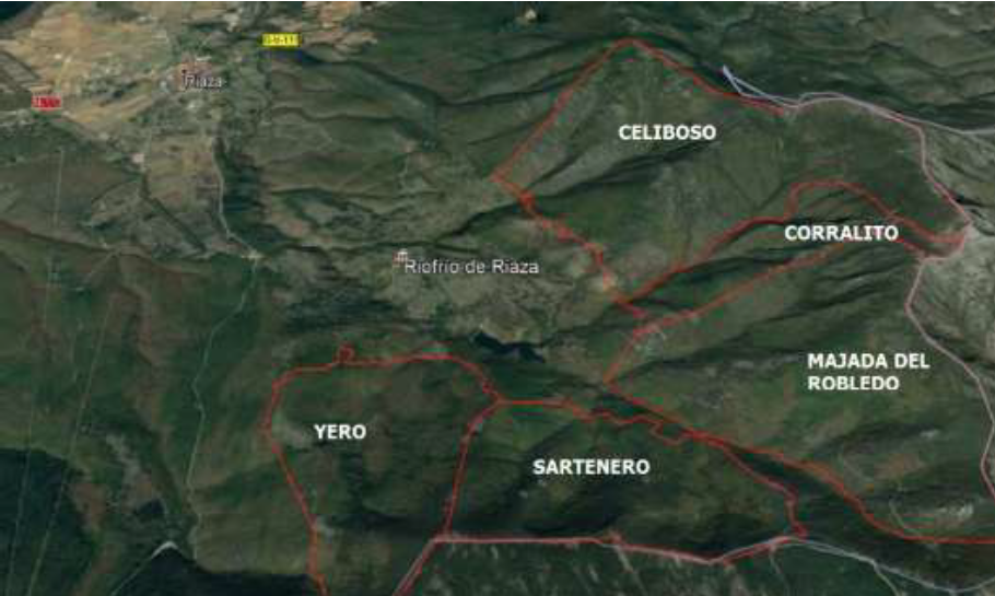 El grupo de montes CORRALITO, CELIBOSO, SARTENERO, YERO y MAJADA ROBLEDO están ubicados en la provincia de Segovia cerca de la población de Riofrio de Riaza, con una extensión de 1.761,57 hectáreas.
